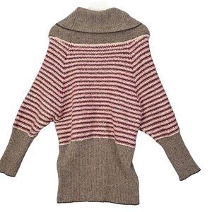 FREE PEOPLE Womens Sweater Large Lambs Wool Tunic Stripe Chunky Knit Bat Wing