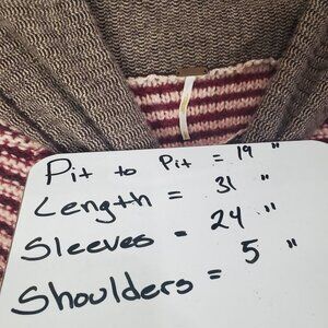 FREE PEOPLE Womens Sweater Lambs Wool Tunic Strip Chunky Knit Bat Wing Sleeve Large