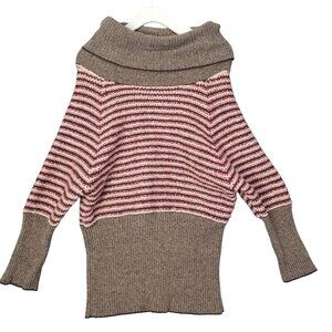 FREE PEOPLE Womens Sweater Lambs Wool Tunic Strip Chunky Knit Bat Wing Sleeve Large