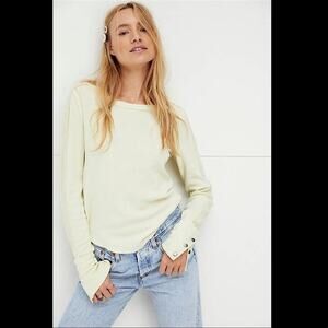 FREE PEOPLE Womens Tasha Long Sleeve Studded Thermal Top in Cactus Milk Size XS