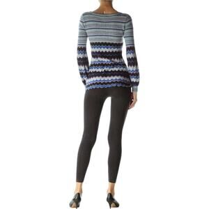 FREE PEOPLE Wool Blend Striped Zig Zag Ribbed Sweater Blouse Bishop Sleeve XS/S