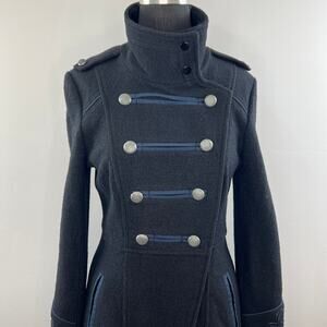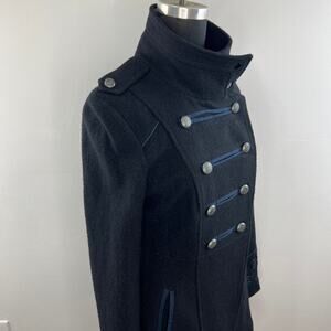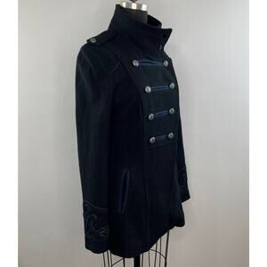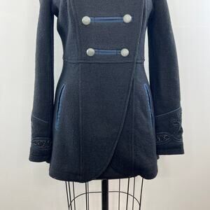 FREE PEOPLE Wool Military Inspired Double Breasted Peacoat Black Embroidered 4