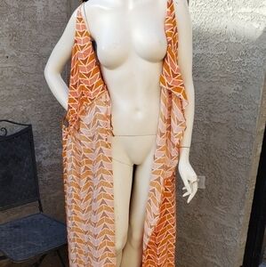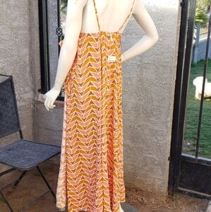 Retro-inspired maxi dress featured in a wrap silhouette and bold geo print.