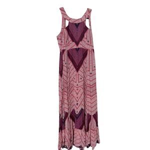 FREE PEOPLE YOU MADE MY DAY LACE UP PURPLE PATTERN MAXI DRESS 10