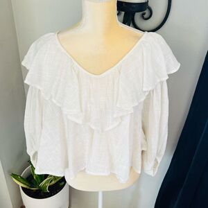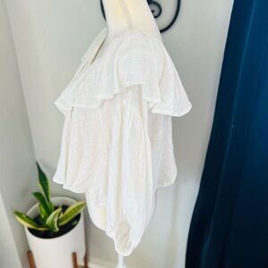 FREE PEOPLE Zuri Ruffle Blouse, Cut Out Back, Summer Boho, Ivory, Small 4/6, NWT