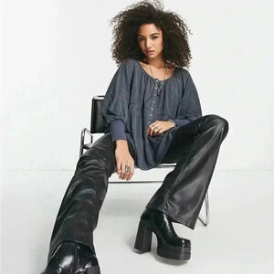 FREE PEOPLE boho Marla knit jersey button down Henley top XS