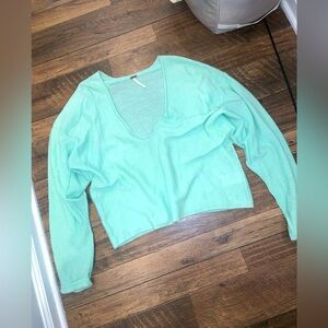 FREE PEOPLE fall SOLITAIRE CASHMERE V NECK PULLOVER boho green soft sweater