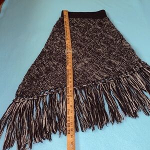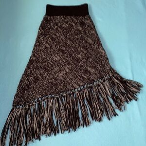FREE PEOPLE fringed knit maxi asymmetrical lined wool alpaca blend skirt, super soft, wide stretchy waistband can stretch to about 15” flat lay. Bohemian vibes. Ideal for chilly days, it combines comfort and fashion effortlessly. Will look soo cute with boots!