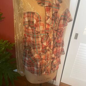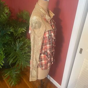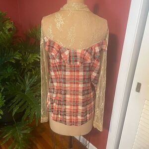 FREE PEOPLE | lace & plaid bohemian button down blouse M