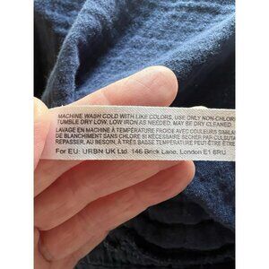 FREE PEOPLE navy gauzy fringe mini dress a-line L festival lightweight boho