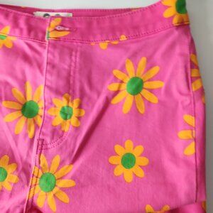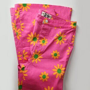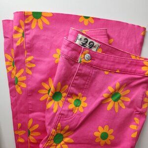 FREE PEOPLE pink lipstick floral print flare leg crop jeans size 29 high rise