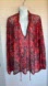FREE PEOPLE red/black blouse, snake print & lace, neck ties, oversized. M
