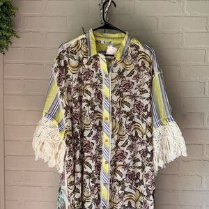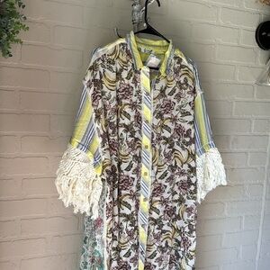 FREE PEOPLE Duster large Watching Waves Maxi Shirt / Aquamarine Combo NEW