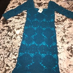 FREE PEOPLE teal bodycon lace-type mini dress NWT