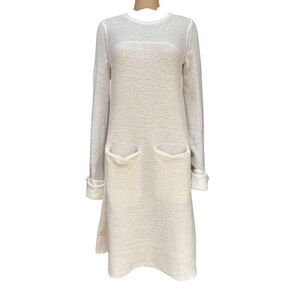 FREE PEOPLE white Rabbit Bell Sleeve A Line Wool/alpaca Zipper Sweater Dress S