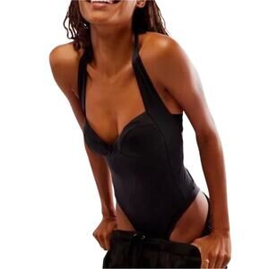 FREE PEOPLE x HAH One Pcs Swimsuit Sz S Black Fairy Resort Y2K Coquette Goth NWT