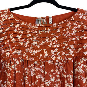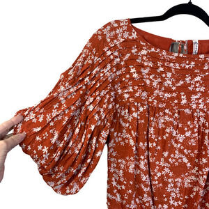 FREE PEOPLE x Intimately Dessa Rust Orange Floral Puff Sleeve Bodysuit - NWT