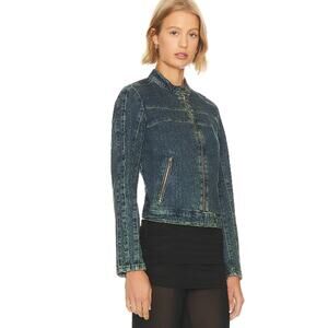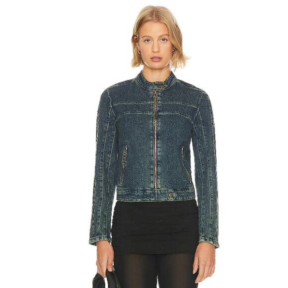 FREE PEOPLE x WE THE FREE Fast Lane Denim Moto Jacket Small Alchemy Blue NWT