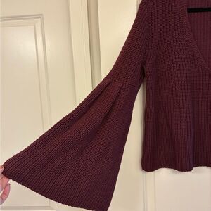 FREE PEOPLE Damsel Bell Sleeve Knit Sweater Deep Purple Women’s Size Large