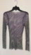 Features: Sheer mesh fabrication with shimmery detail, crew neckline, raw edge hem