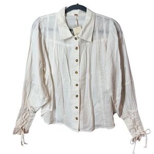 FREE PEOPLE Kiss Kiss Blouse in Ivory Lace Up Cuff NWT FLAW