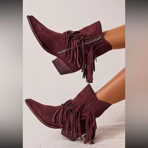 FREE PEOPLE LAWLESS FRINGE WESTERN SUEDE ANKLE BOOT NEW