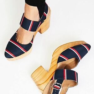 FREE PEOPLE MONOCO PLATFORM WOOD HEELED CLOGS NEW NAVY RED WHITE STRIPED EU 41