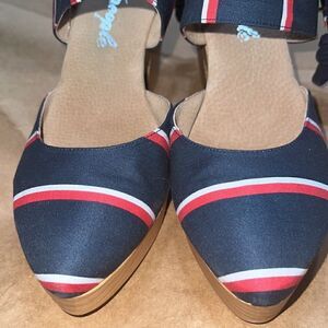 FREE PEOPLE MONOCO PLATFORM WOOD HEELED CLOGS NEW NAVY RED WHITE STRIPED EU 41