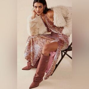 Free People Glitter & Gold Rose Pink Sequin Velvet Midi Party Dress
