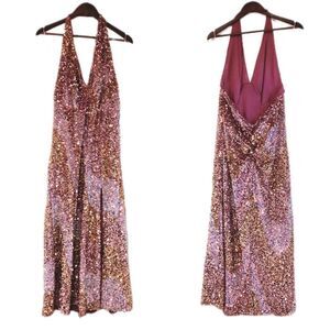 FREE PEOPLE Pink Velvet Sequin Party Dress Midi Maxi Halter Neck Size Medium New