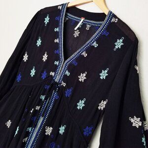 FREE PEOPLE Star Gazer Embroidered Boho Mini Dress Coverup Black XS Tunic $128