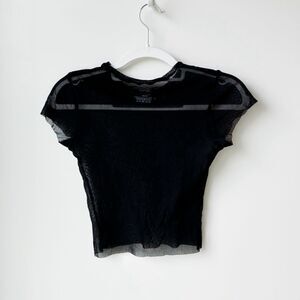Adorable sheer mesh stretchy cropped tee that’s the perfect swim cover up!