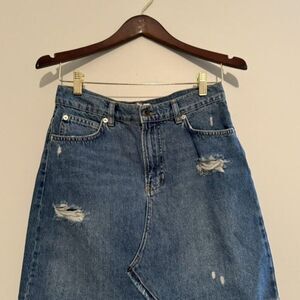 FREE PEOPLE WE THE FREE Hallie Blue Denim Distressed Mini Skirt Size 27 NWOT