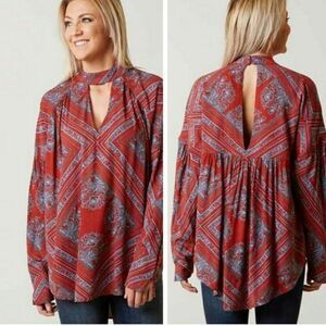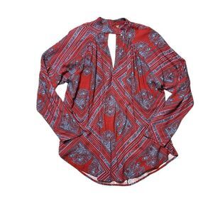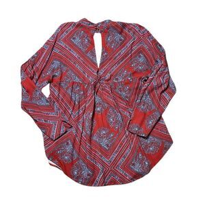 FREE PEOPLE Walking On A Dream Tunic Top Red Blue Size Medium