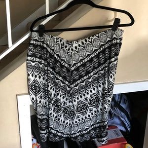A VERY CUTE MINI SKIRT CAN BE ONE OF YOUR VERSATILE DAY TO NIGHT SKIRTS. IT'S BLACK AND WHITE IN A CONTEMPORARY "IKAT" PATTERN. ELASTIC WAIST WITH A TIGHTER UNDERSKIRT AND THEN THE OVERLAY OF THE SAME MATERIAL DRAPES HIPS - NICE DRAPE. THE FRONT HAS A SEWN-IN TWIST TIE - IT REALLY IS THE CUTEST & EASIEST THING FOR SUMMER! THROW ON ANY COLOR SANDALS AND A TANK TOP!