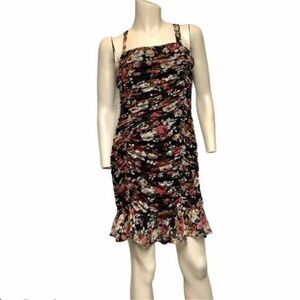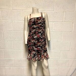 ❤️ 🆕 FREE PRESS floral mini dress stretchy ruffle hem new Large
