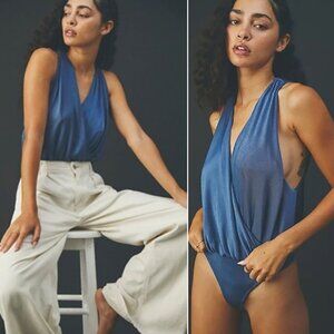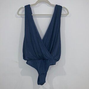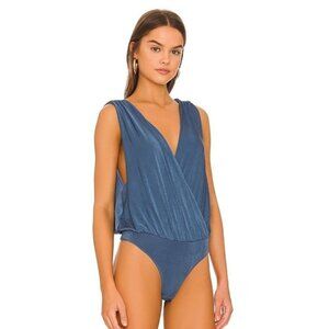 FREE People Blue Metal billowy Wrap Night Owl Bodysuit in Blue Metal size Small