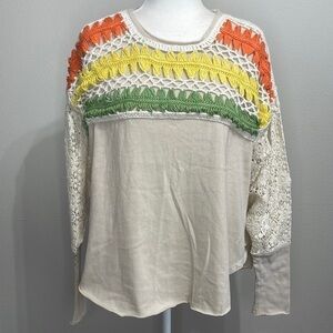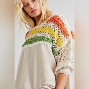 FREE People ‘High Hopes Tee’ Crochet Pullover Crew Neck Sweater XS