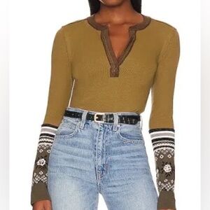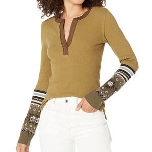 FREE People Mikah Layering Cuff Thermal Top /Army combo