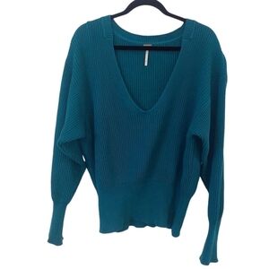 FREE People Ribbed Cozy Deep V-neck Sweater. size Small. Great Pre-owned Condition.