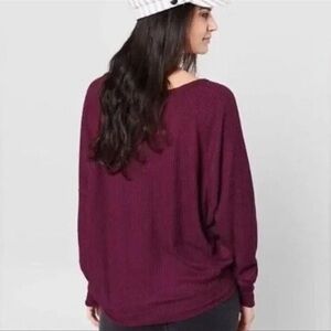 A wide neckline adds the versatility of V-neck or off-the-shoulder wear to this airy waffle-knit top.