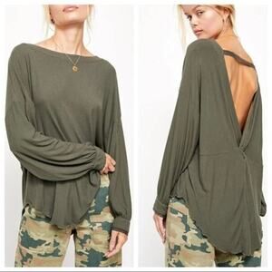 FREE People Shimmy Shake Top Army Green Oversized Size Small