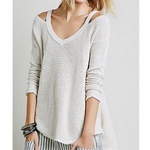 Free people comfy cozy boho sweater called “moonshine” cold shoulder, 100% cotton sweater top