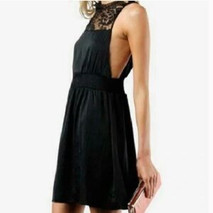 Excellent condition. Free People Size M. Open arms, sexy high neck lace. Elastic waistband. Pleated. Measurements in photos. Smoke-free home. No stains, tears, or holes.