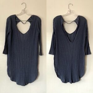 Keyhole back with long split sides. Will need to be worn with a bralette or tank! Material tag cut out.