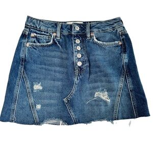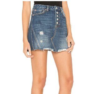 FREE People We the Free From Revolve Button Up Distressed Jean Skirt Size 26