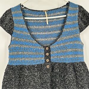 FREE People Women’s Gray/Blue Wool Blend Low Scoop Neck SS Sweater Size Small