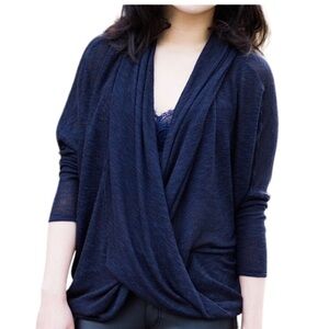 Free People Wrap Drapey Hacci Knit Top Size XS Navy Blue