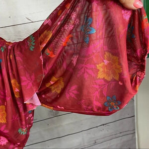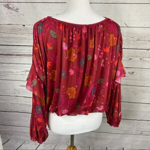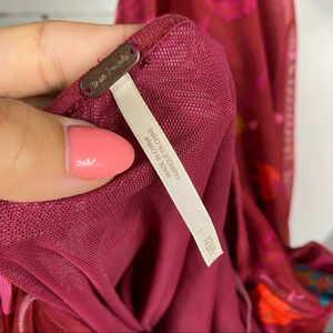 Free People maroon mesh floral design long sleeve loose fit bohemian blouse top Sz XS