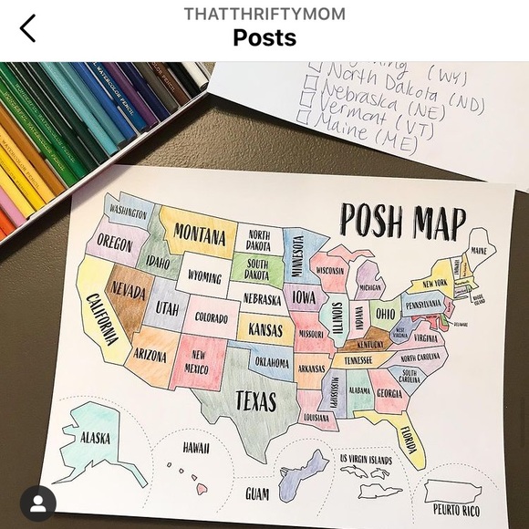My husband and I created this color-in US map template for tracking poshmark sales last year! Find me on Instagram @thatthriftymom and message me your email address for a FREE template! We made it free as a way to give back to this awesome community and share the #poshlove . All we ask is to spread the word & tag us in your maps! š„°š„°